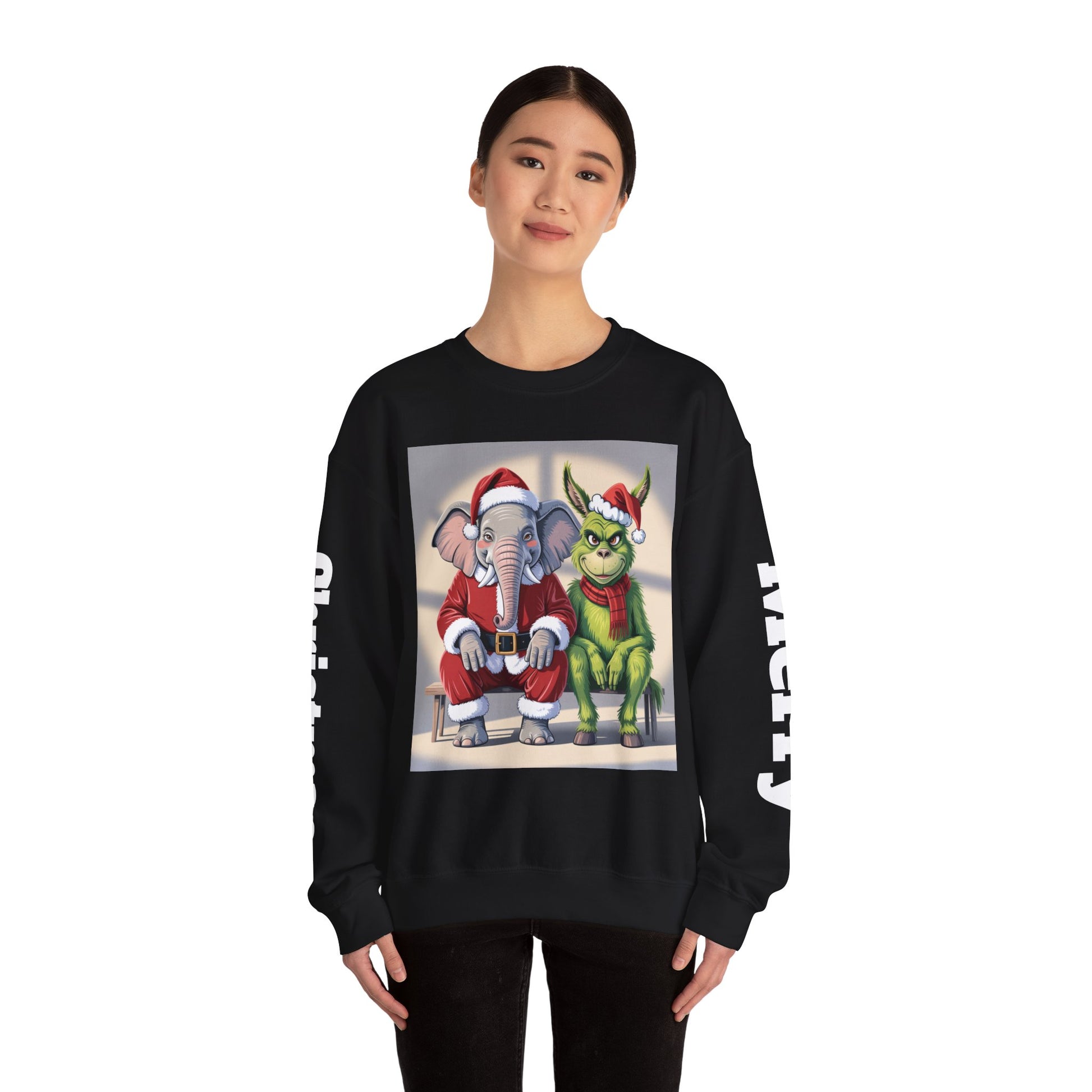 Christmas Sweatshirt — Elephant & Grinch Holiday Crewneck (Ho-Ho! Bah!)