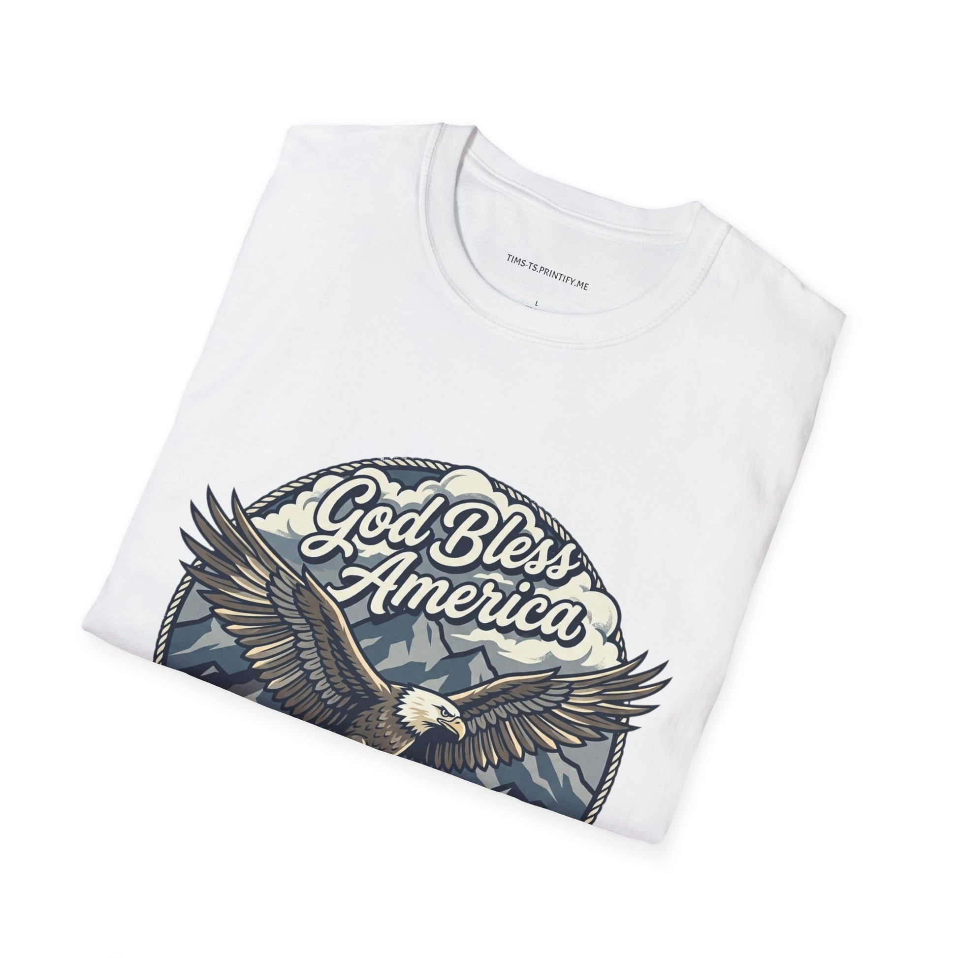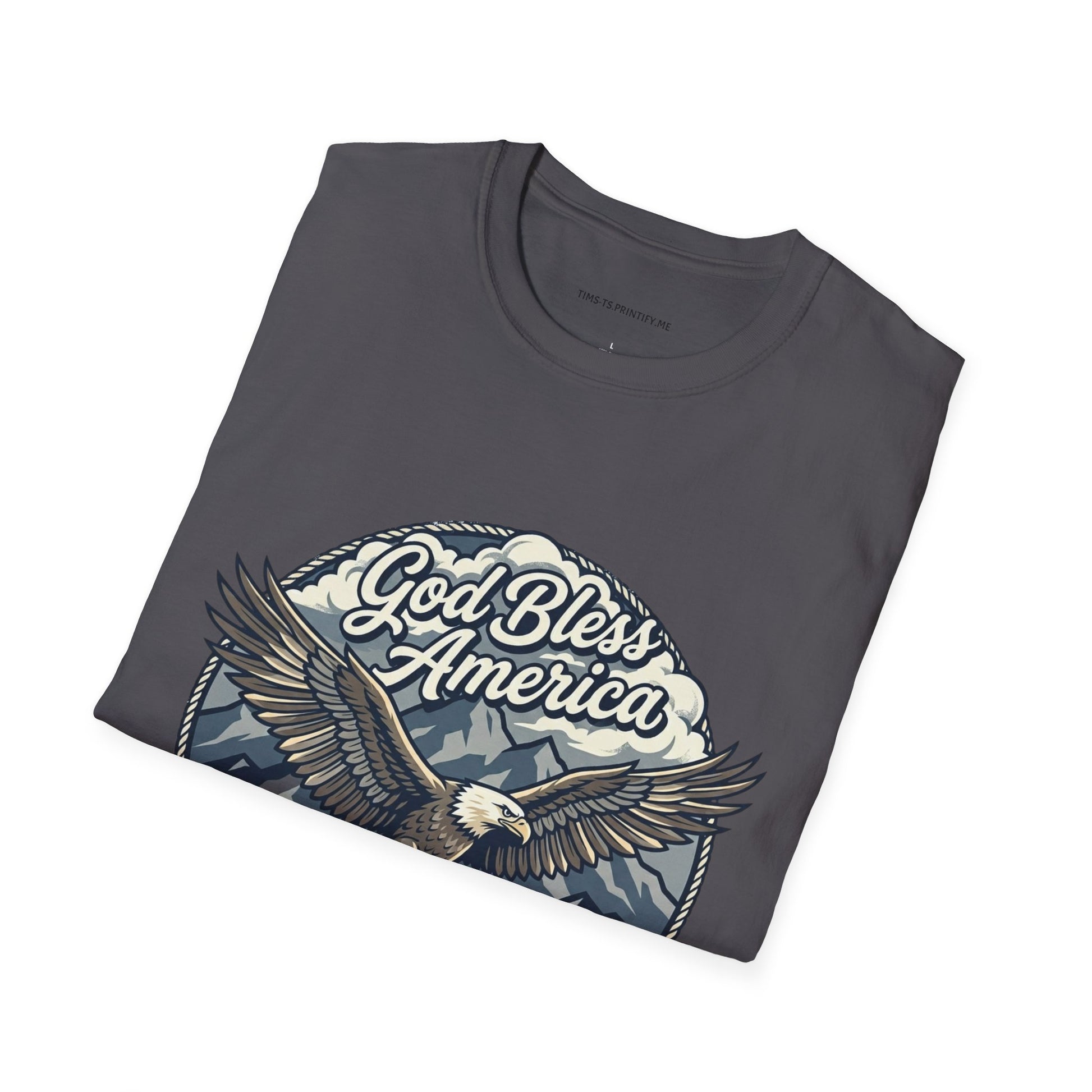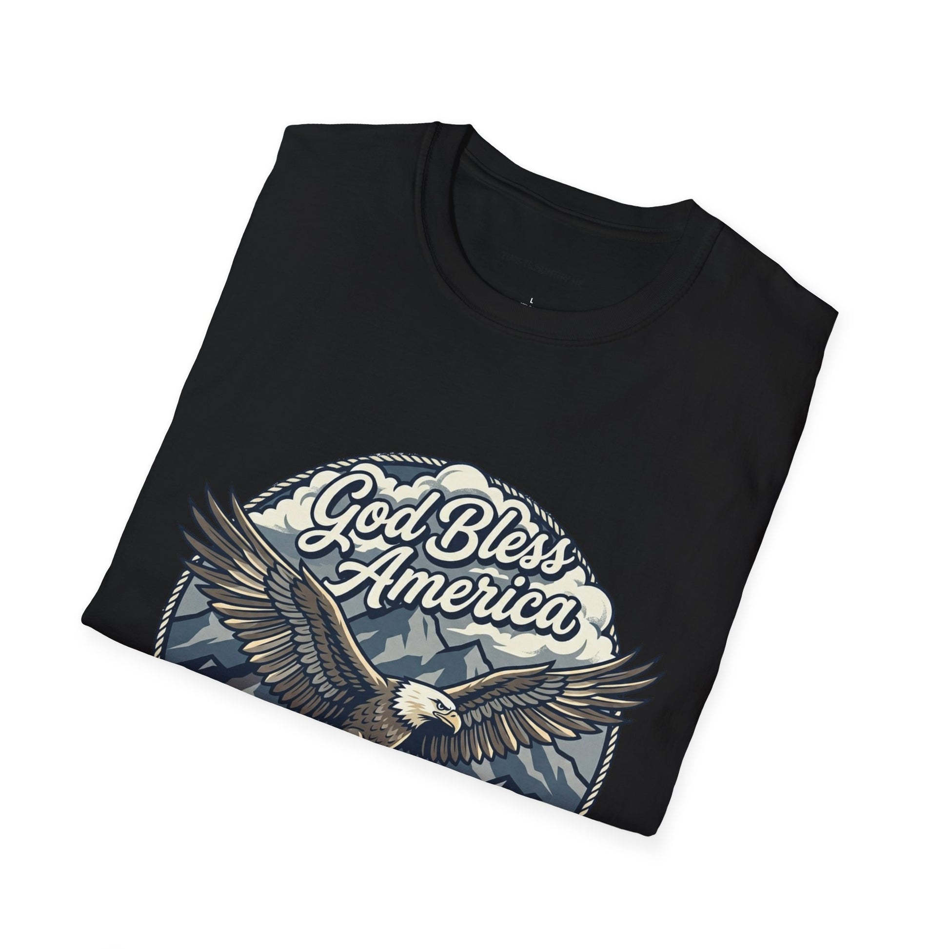 Wear a quiet, steadfast pride with this vintage-inspired tee. A soaring bald eagle arcs over waving stripes, the words “God Bless America” curling above like an old postcard from a road trip down small-town Main Street. The muted, weathered palette and hand-drawn linework give the design a lived-in feeling—comforting and familiar—so the shirt reads more like a memory than a statement. Lightweight and soft, it layers easily under a flannel or stands alone on warm evenings at backyard gatherings, parades, or low-key patriotic moments with people who care about country and craft. It’s for the listener at the bonfire, the driver on long open roads, the person who prefers quiet affirmation over loud slogans.